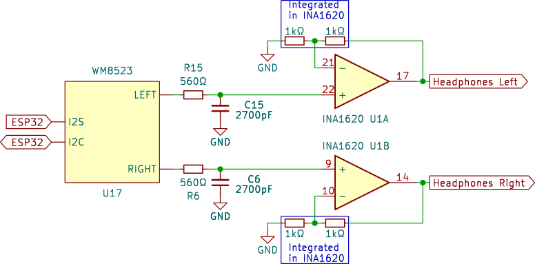 Referring back to the schematic for Tangara's audio chain, pay attention to the region between the DAC's output filter and the amplifier's input.