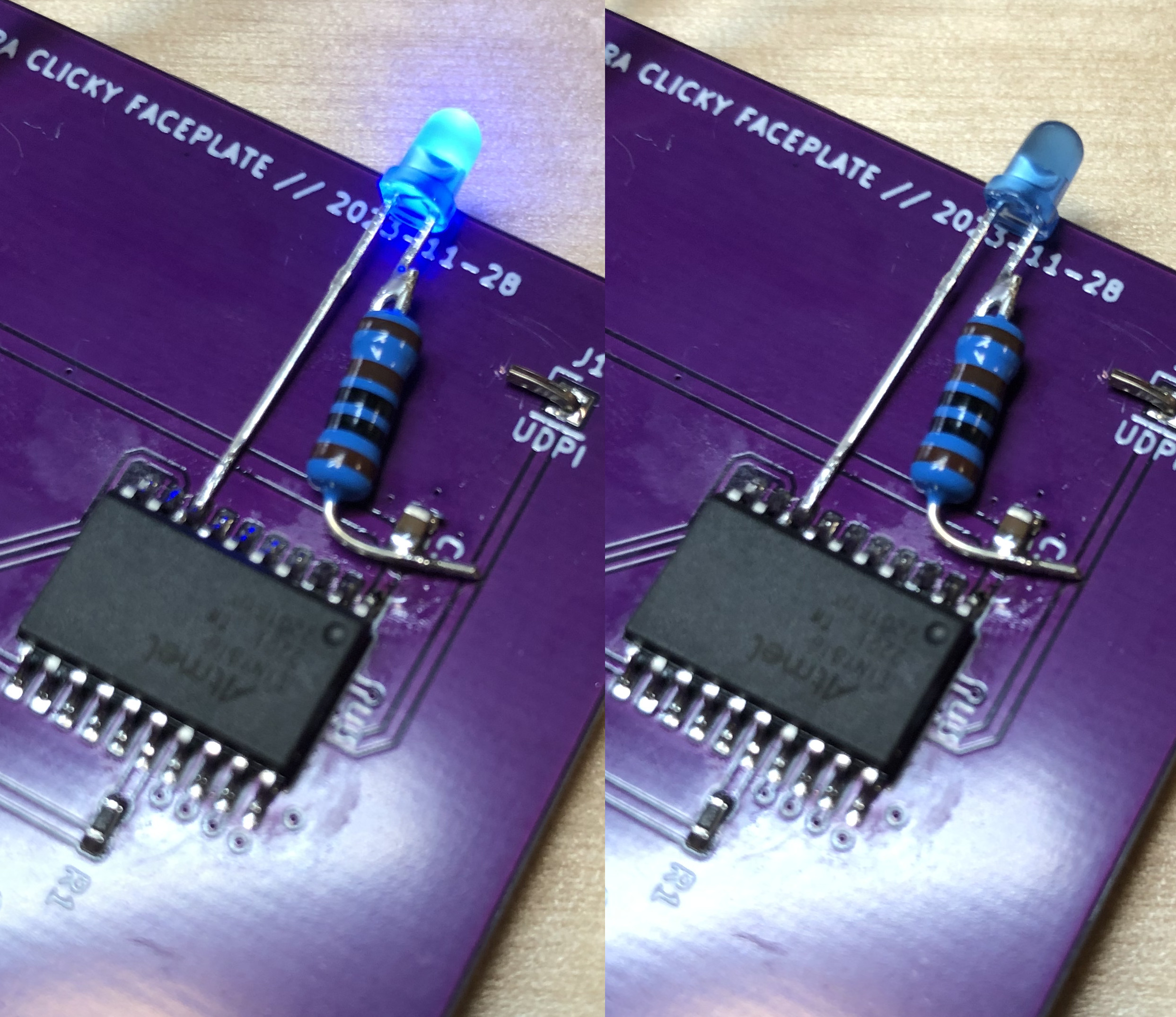 Then I altered the firmware to blink the LED differently depending on how the rotary encoder is used.